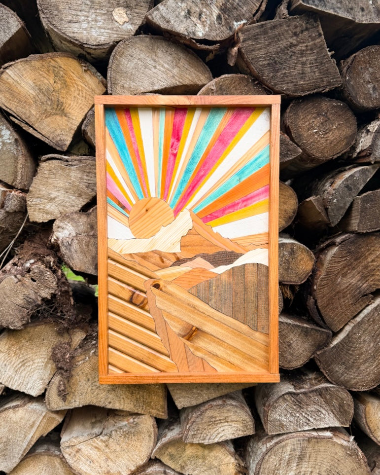 Explore the beauty of the PNW with this handcrafted wooden landscape mosaic.Inspired by Mt. Hood, it reflects the simple joy of being on the trail—fresh air, steady steps, and views that make you pause. Crafted with care, it brings the grounding, peaceful feeling of the outdoors into your space.